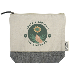 Discover sustainable style with our promotional recycled cotton two tone everyday pouch. Crafted from 100% recycled cotton, this eco-friendly accessory not only makes a bold statement but also reflects your commitment to the environment. The melange-colored bottom, paired with a matching zipper pull, adds a touch of sophistication, making it a standout piece for any occasion.