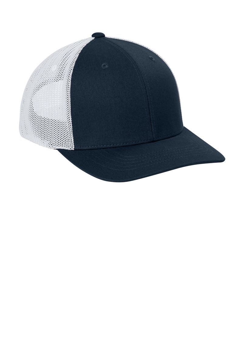 100% cotton twill front panels with 95/5 polyester/spandex mesh back panels