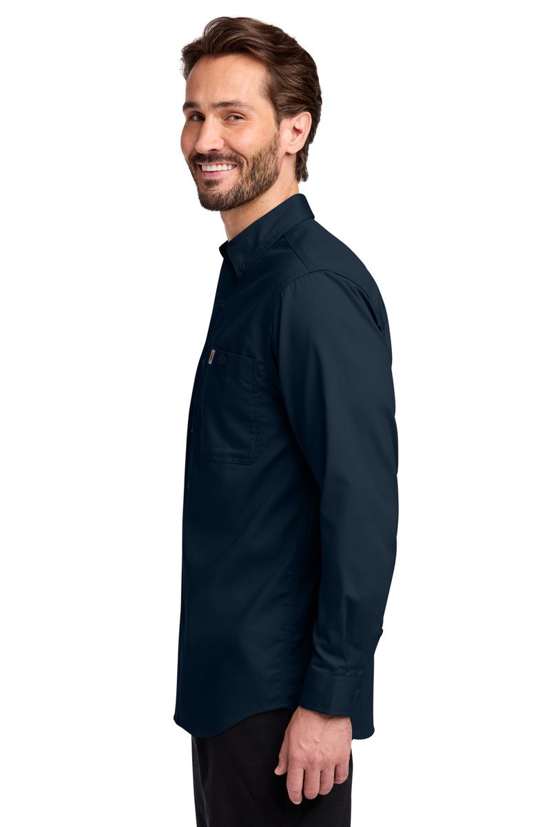 Clean and simple, this button-down work shirt can do it all. A triple-stitched, wrinkle-free design maintains a professional appearance, day in and day out.